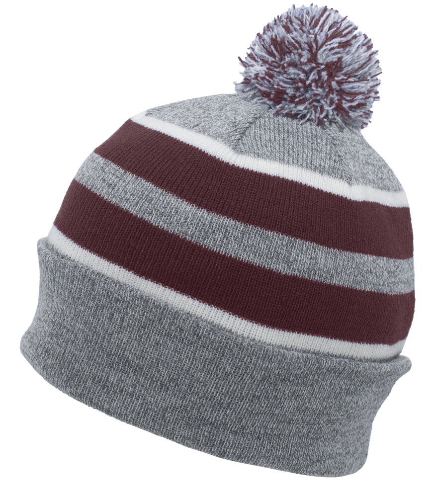 * Acrylic * Contrast stripes on combo colors * Pom-pom yarn top (Multicolor on combo colors)