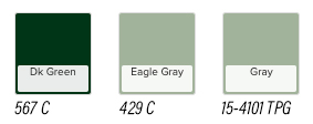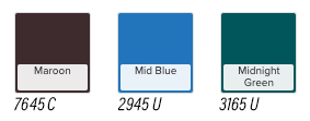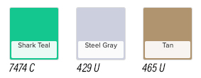 Closest Pantone equivalent shown. Due to printing limitations, colours shown and Pantone numbers suggested may vary from actual colours. Colours and availability subject to change without notice.